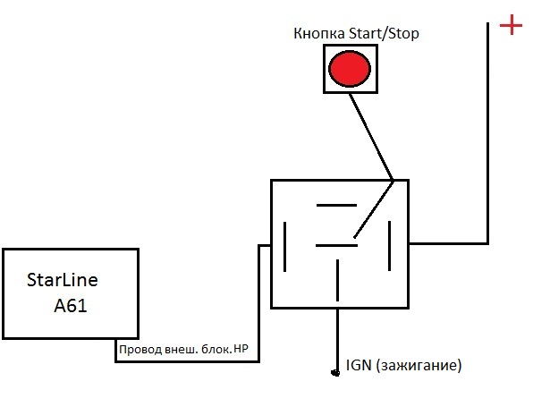Грубо говоря вот так и имел ввиду... НР блок. вроде на старлайне не от зажигания работает а от состояния (на охране или нет)