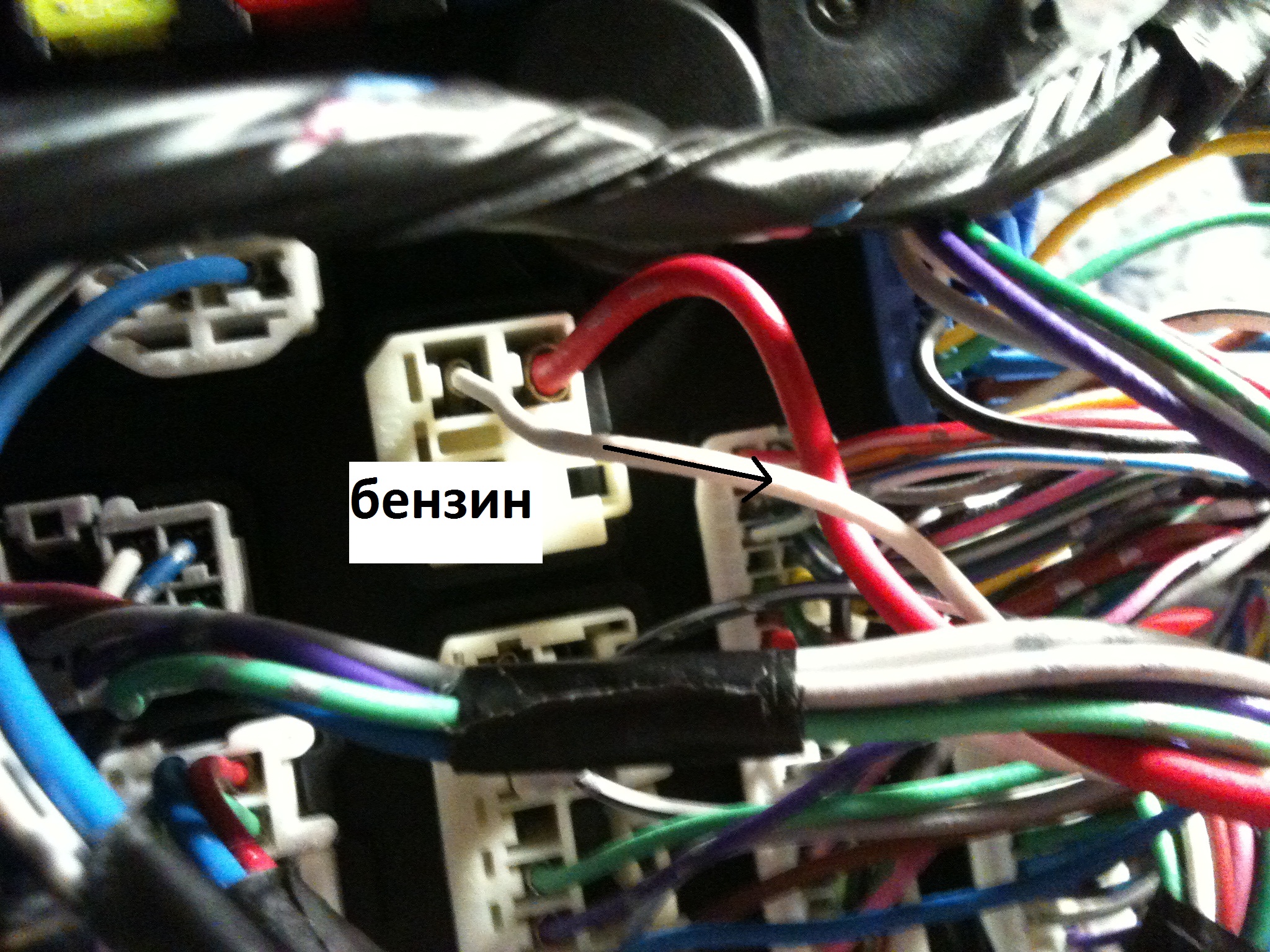 Если можно помогите. Нужны выходы расцветки провода на бензонасос. Разъемы сидят в районе ручки открывания капота и далее по порогу идет жгут... Спасибо.