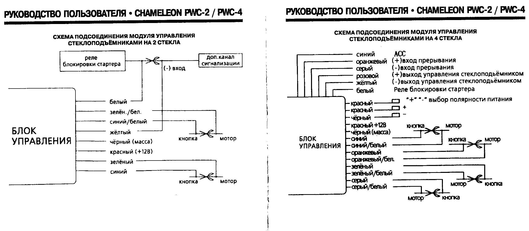 Так ну сегодня вроде подключил. Все работает, на кочках не глохнет. Как понимаю осталось запрограммить для запуска, брелок режим работы распознает. Вопрос такой: у меня стоит доводчик стекол Chameleon PWC-4 На старой сиге он был подключен так: синий провод с маленькой фишки к желтому проводу сигналки, и розовый провод на запирание двери. Что-то аналогично я его подключил и не работает.... Помогите советом.