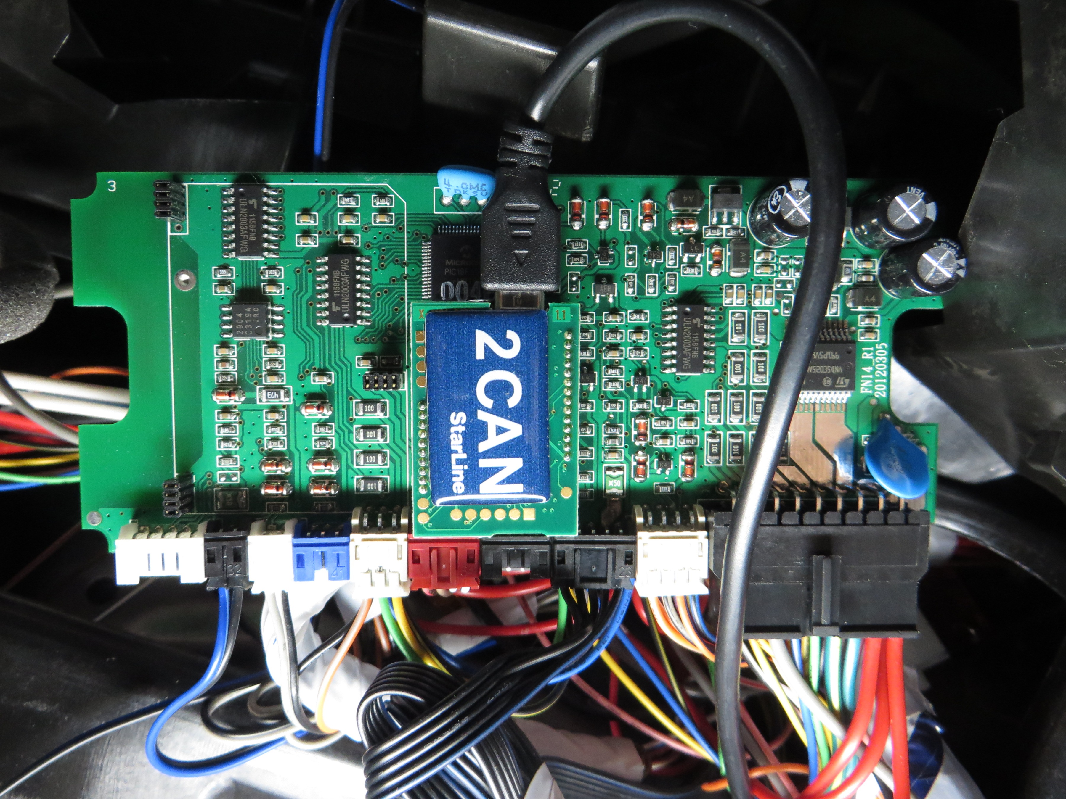 Провода интергированного CAN модуля подключены согласно информации сайта "can.starline.ru" (пин.1зеленый - CAN-H коричнево-красный; пин.14 белый - can-l бело-красный; пин.6 синий - can-h бело-синий).