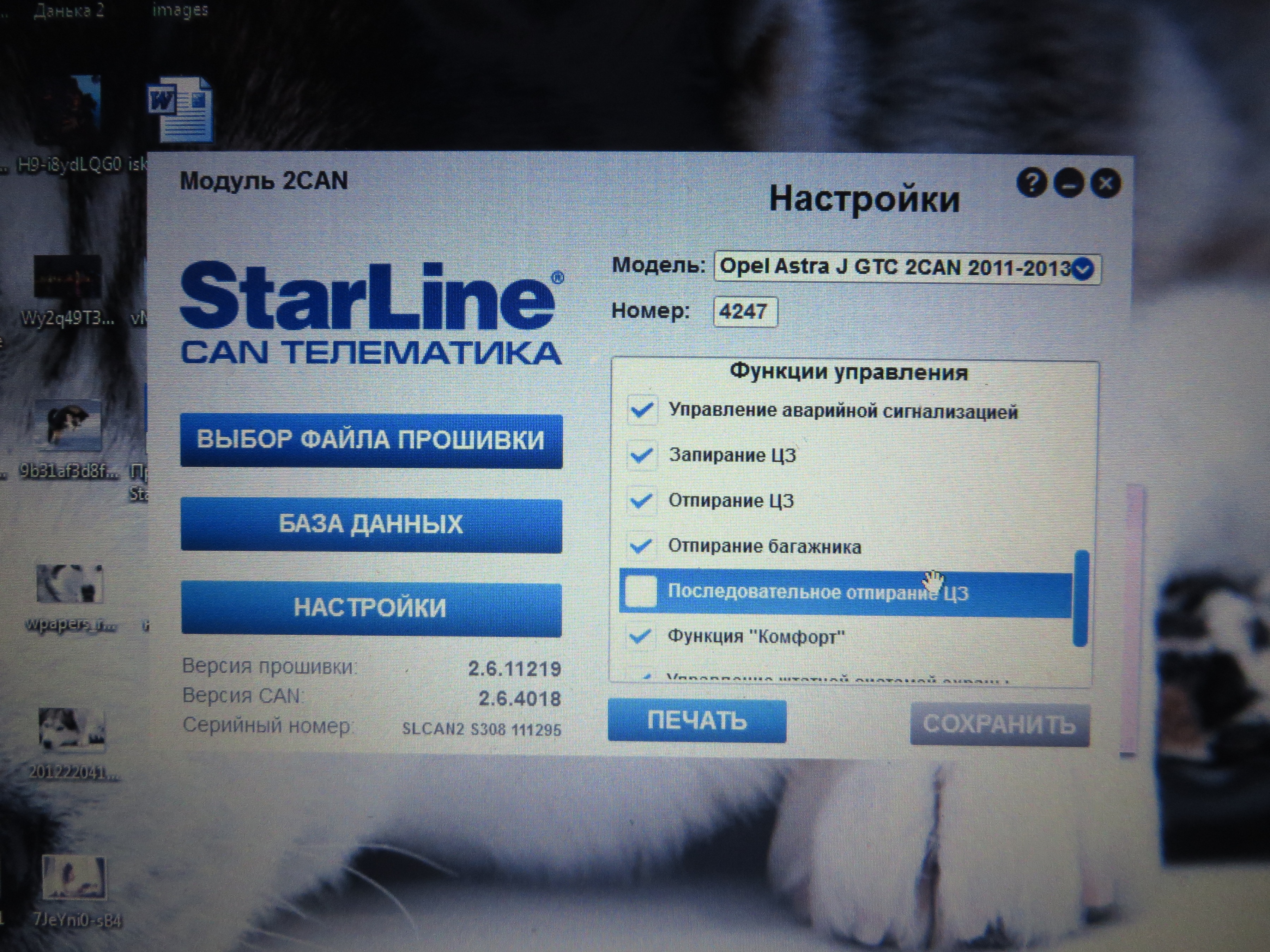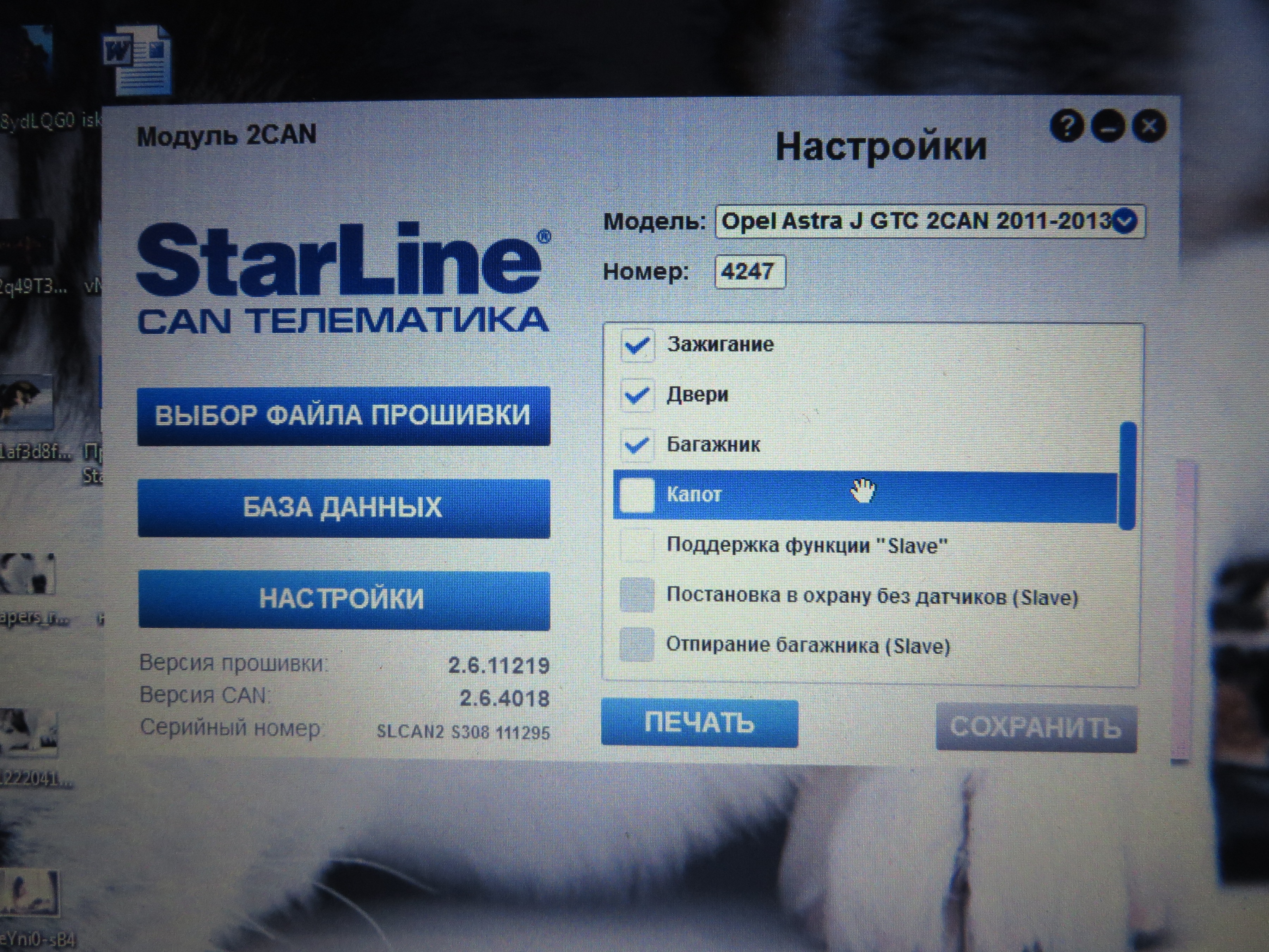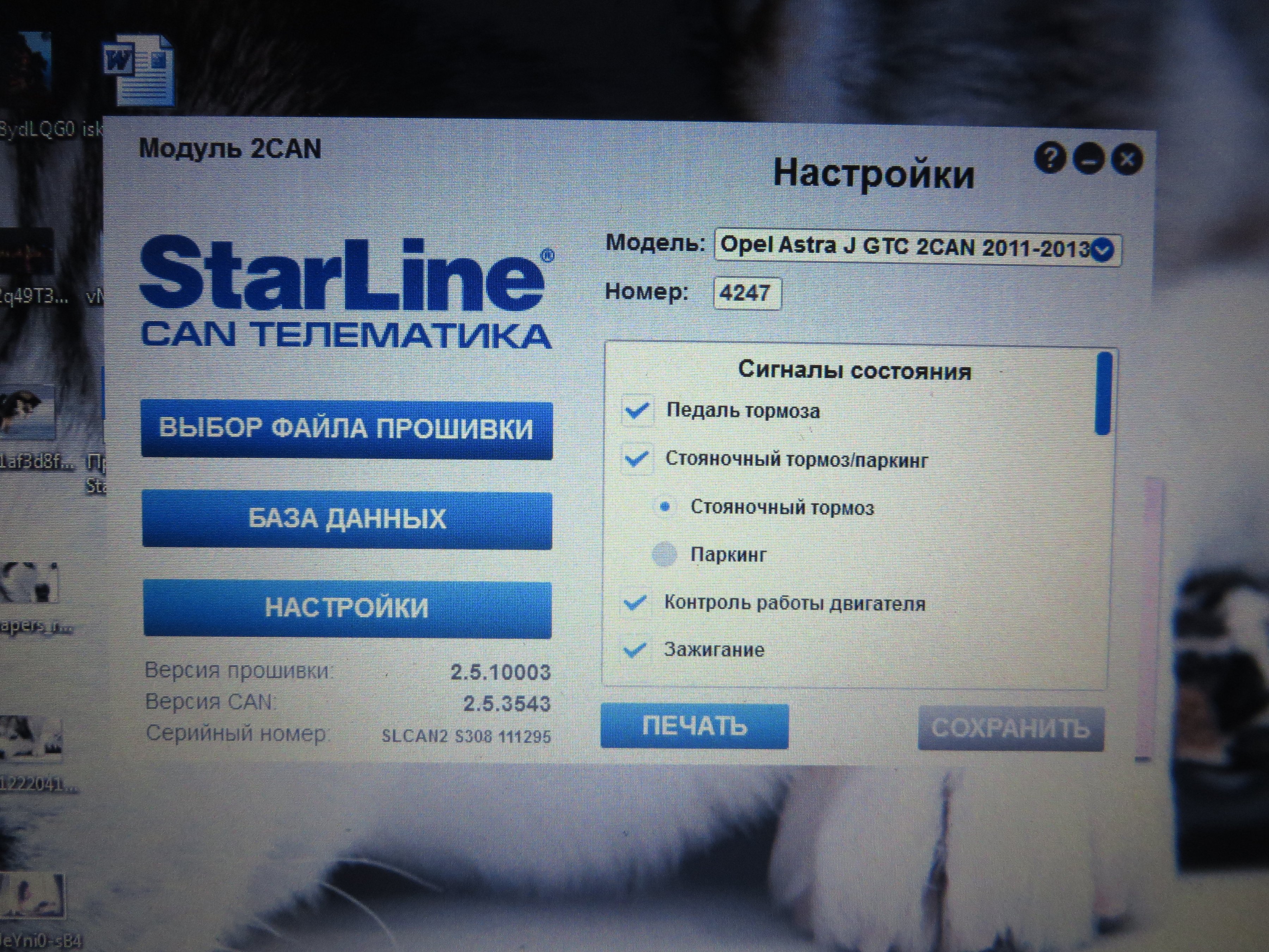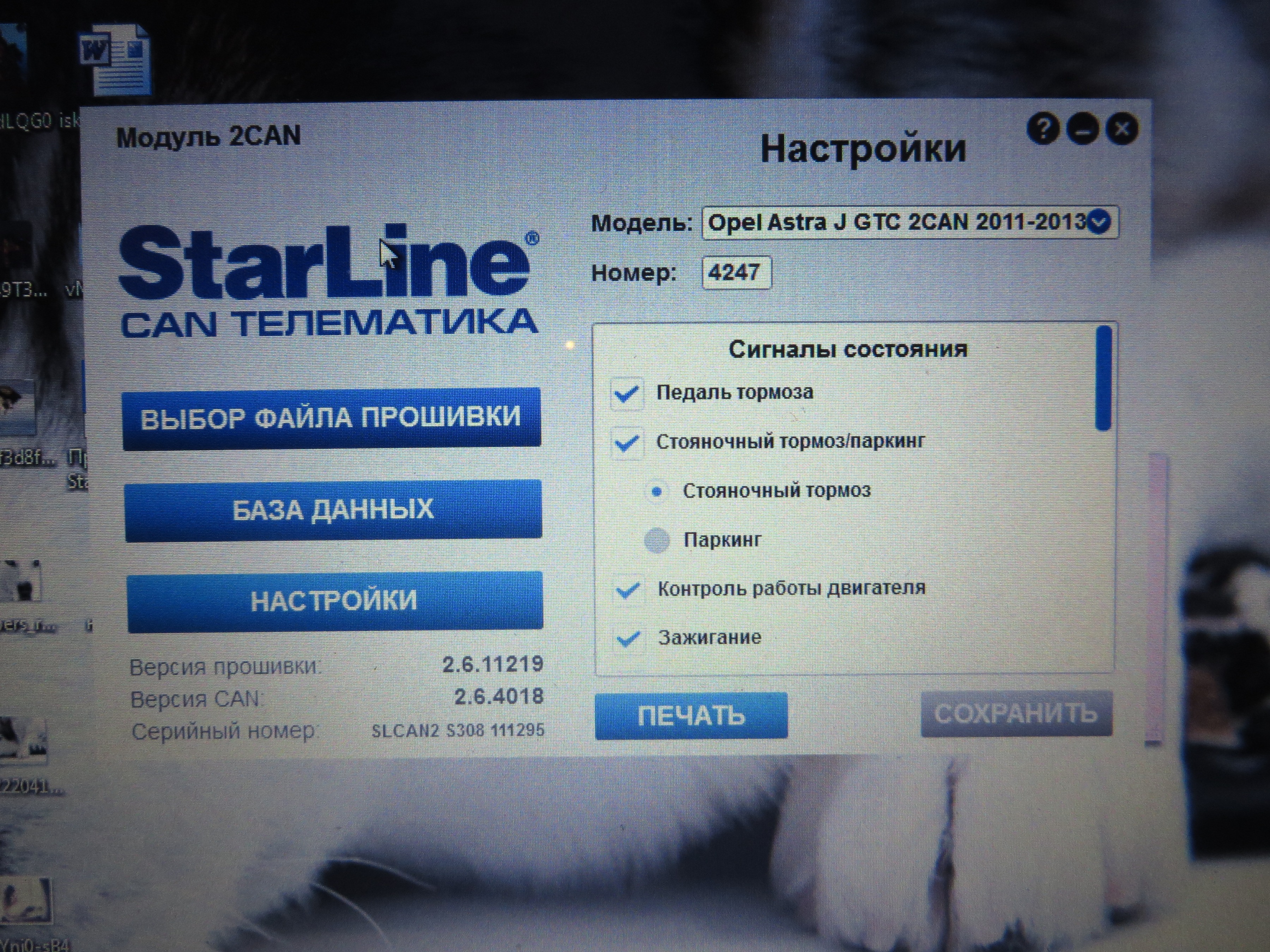 Номер автомобиля и все настроечные параметры вводил через компьютер, после того как обновил прошивку, все запрограммировалось и сохранилось без проблем. (я отключил галочки со следующих функций:капот; зажигание (т.к. этипараметны подключены аналогом); закрыть ЦЗ; открыть ЦЗ (т.к. включена функция управления штатной системой сигнализации)). Войти в режим программирования can модуля и параметров сигнализации не удается. Светодиод моргает нужное количество раз(при нажатии сервисной кнопки), но при повороте ключа в положение "зажигание" сигнализация молчала.