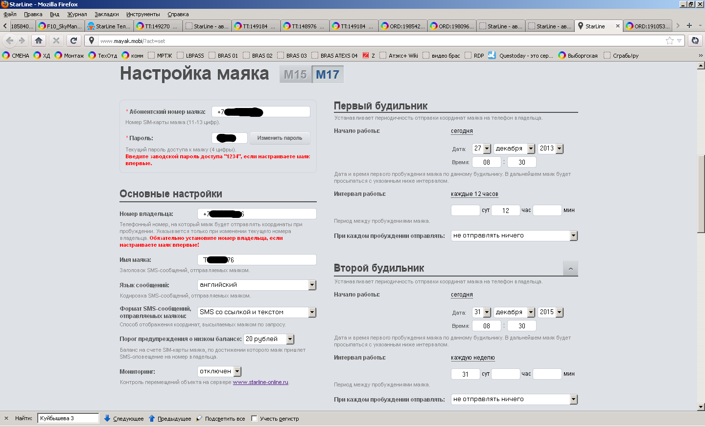 в субботу поставил оба устройства в автомобили, подключил только внешнее питание, сегодня приходит СМС что батарея устройства разряжена. Сходил в машину, завел, послал в маяк СМС 1234 ИНФО пришел ответ: