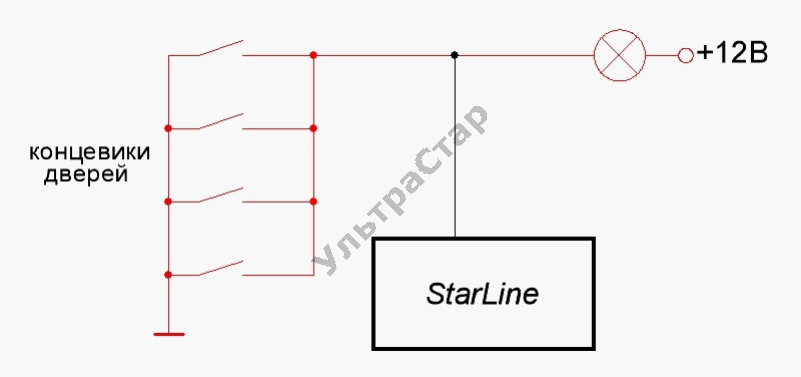 2. Если все концевики подключены к одному проводу и вежливая подсветка отсутствует, то необходимо подключаться по схеме "подкл концевиков".