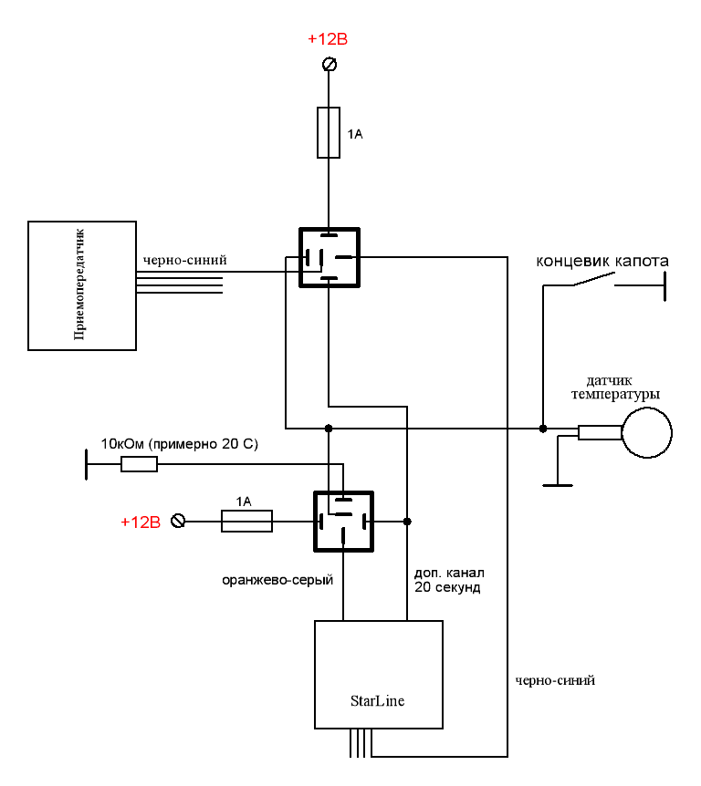 Резистор 10 кОм (примерно 20 градусов) для того, чтобы не отключался запуск по температуре при включении доп. канала.