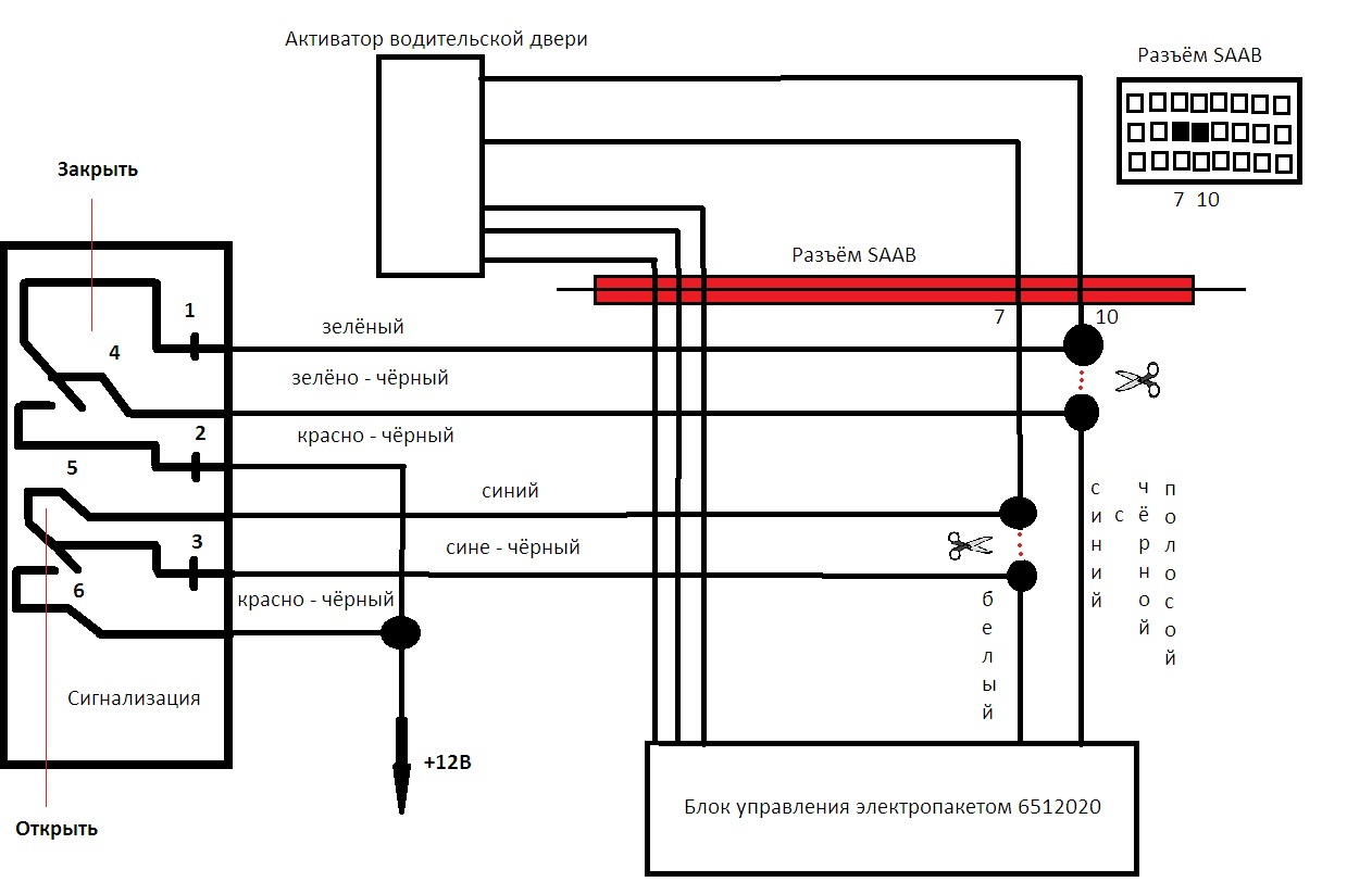 Если отключить, 6ти контактный разъем, сигнализация срабатывает, а замки не закрываются вообще.
