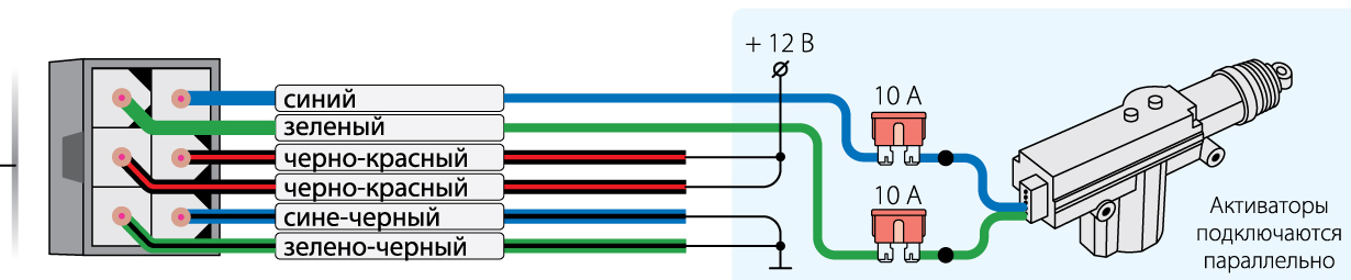 дает +12В через предохранитель 10А. и у меня вместо массы при нажатии на кнопку идет +12В?