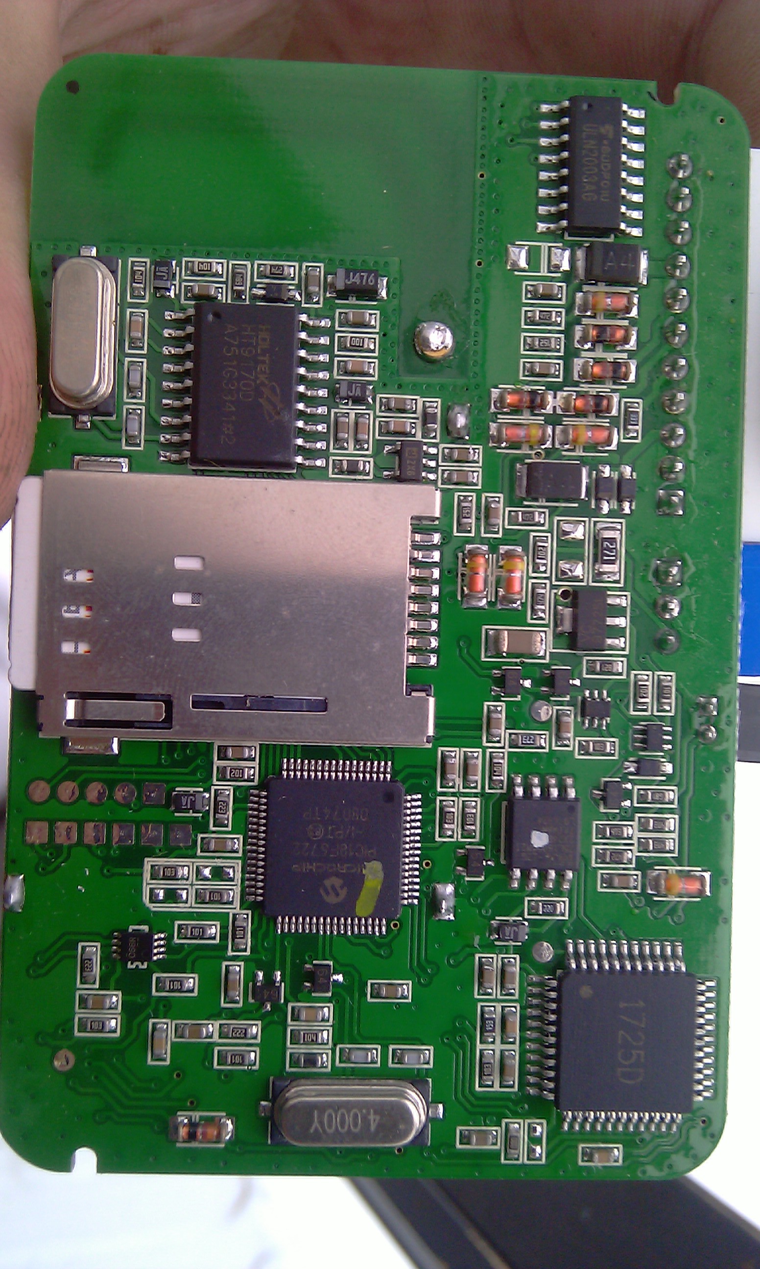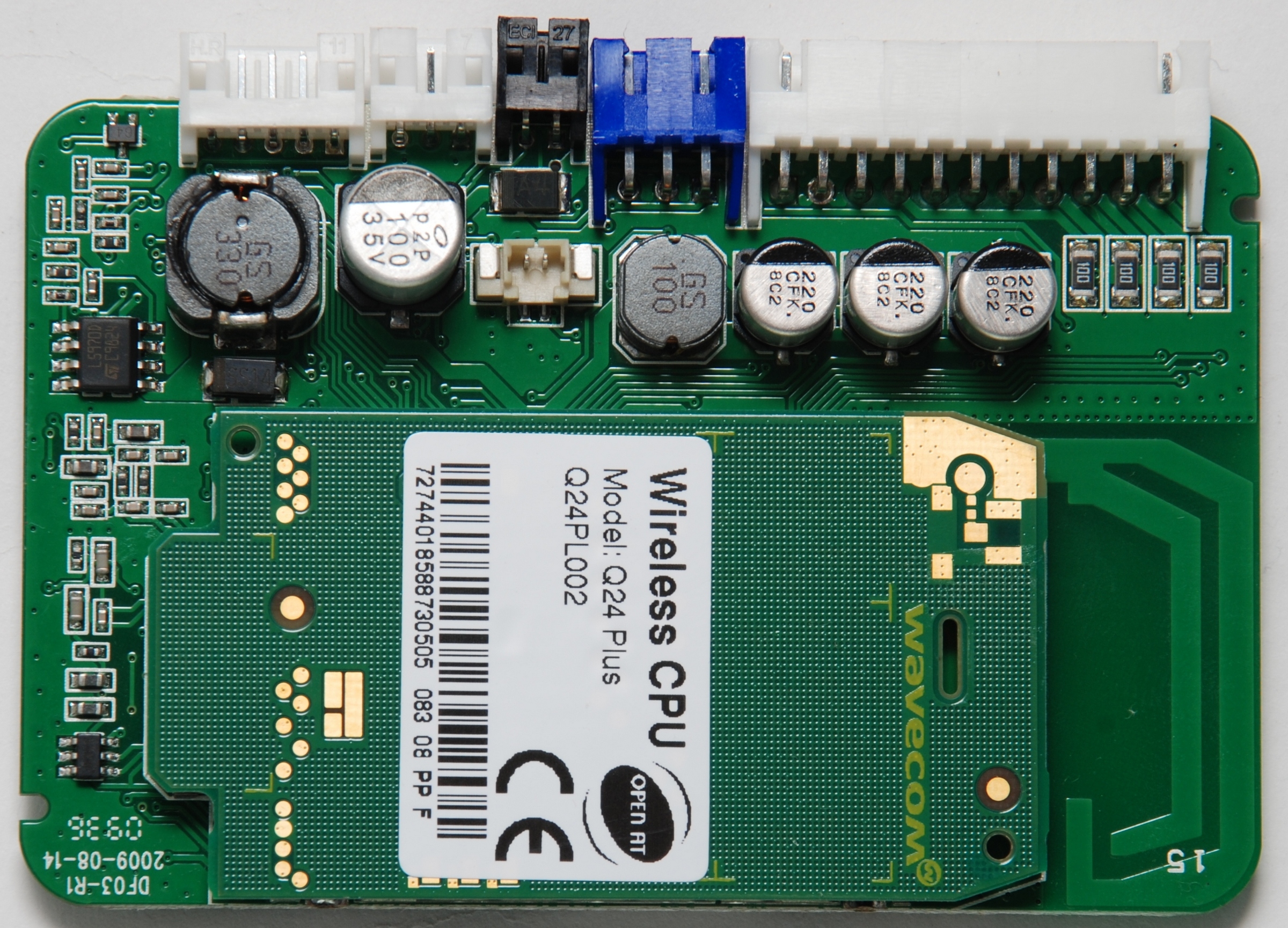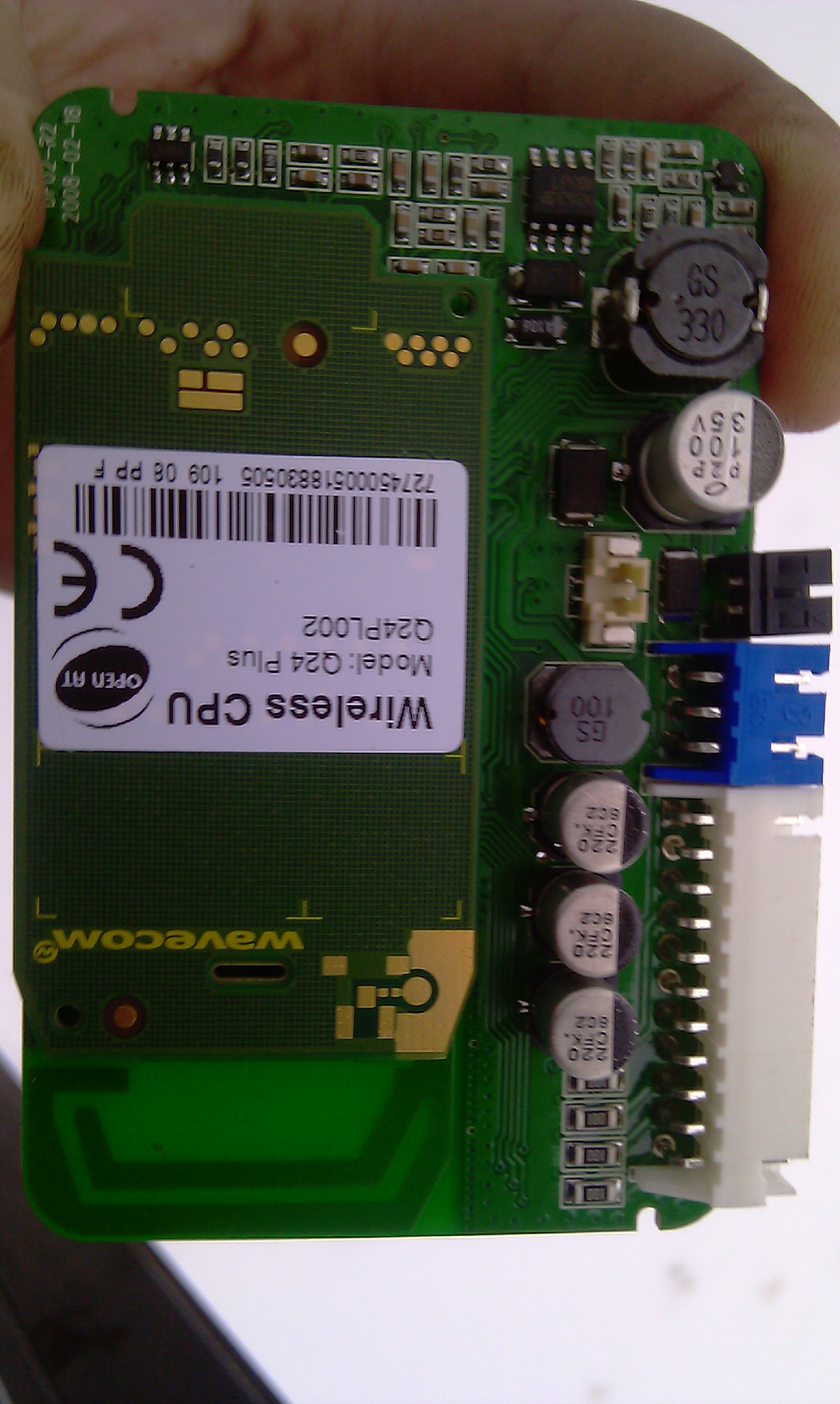 Пожалуйста, сфотографируйте в максимально возможном разрешении и с точной фокусировкой обе стороны печатной платы модуля Messenger и разъем GSM модема. Модуль разбирается без инструмента - достаточно руками отжать две защелки на нижней стороне корпуса. Для того, чтобы добиться максимальной резкости снимка переключите фотокамеру в режим "приоритет по диафрагме" (на переключателе режимов обычно обозначается буквой A) - выберете его и установите значение диафрагмы около 1/2 от максимального. Если фотокамеры под рукой нет, можно воспользоваться компьютерным сканером документов.