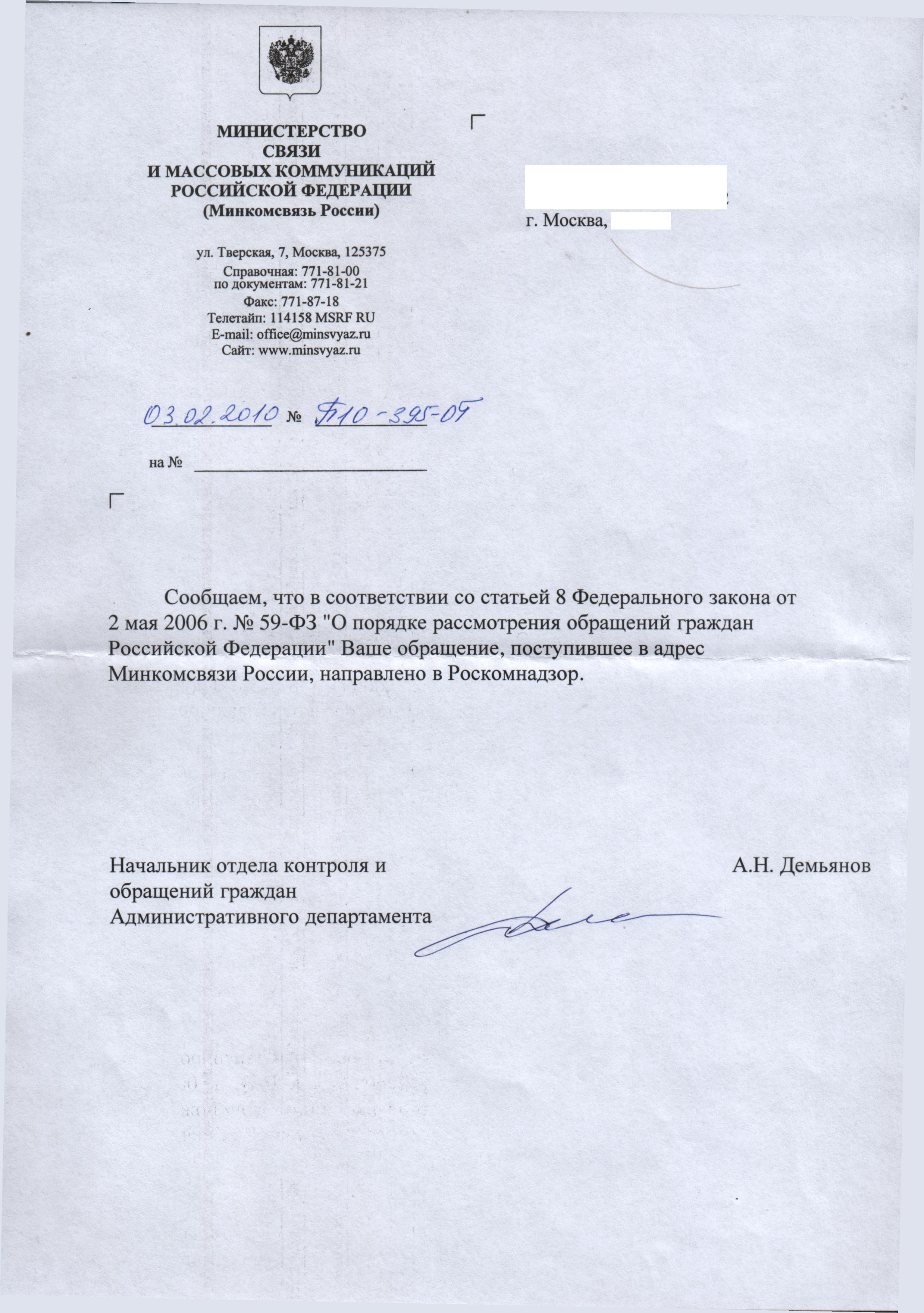Ответ Минсвязь