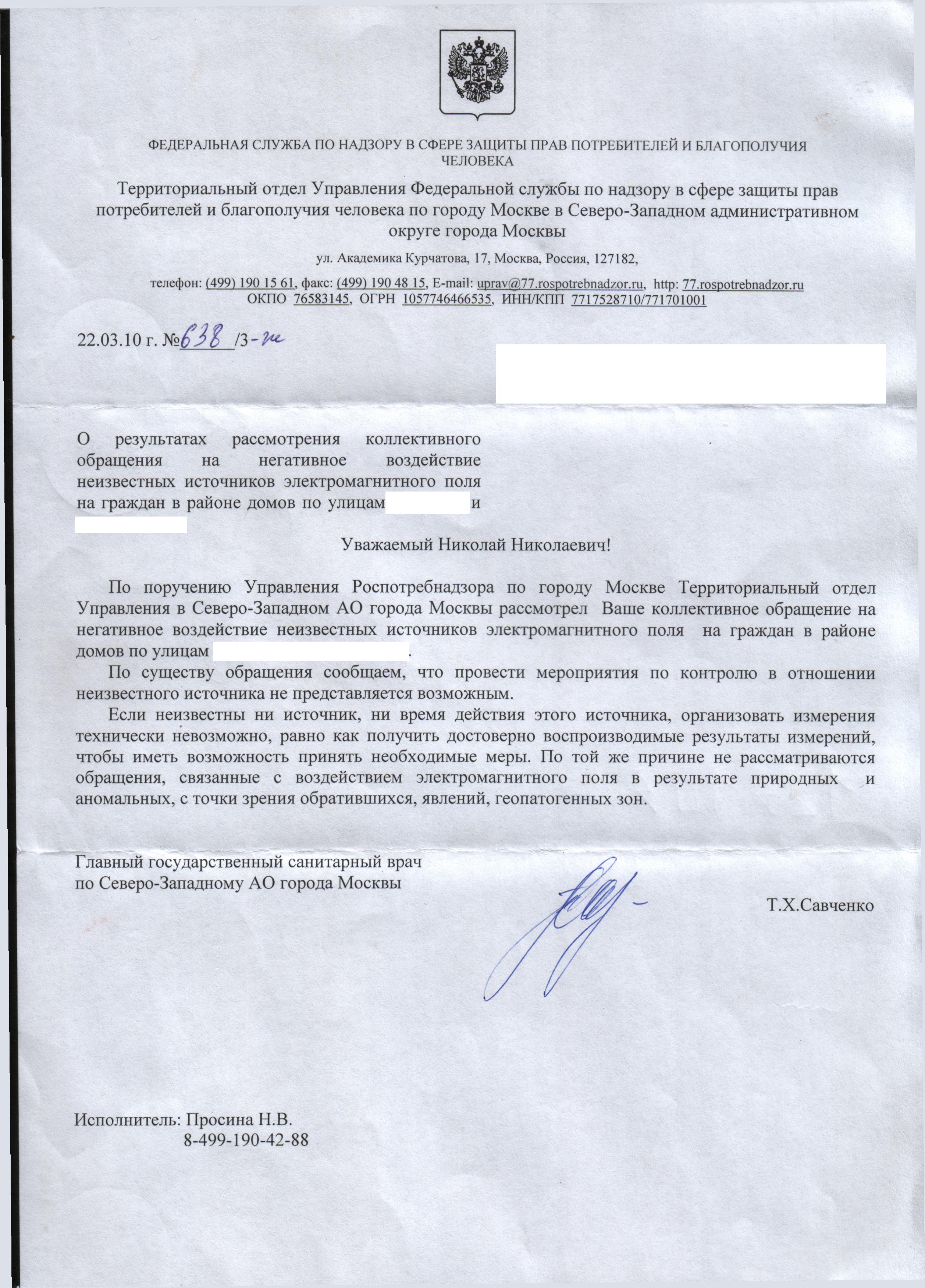 Направлена повторная коллективная жалоба в «РЧЦ ЦФО» от 01.03.2010 №2402, содержащая ссылки на законодательные акты и основания для проведения работ «РЧЦ ЦФО» по выявлению источников недопустимых радиопомех на безвозмездной основе. Получен ответ от 11.03.2010 № 81-04-12/2741 о том, что: