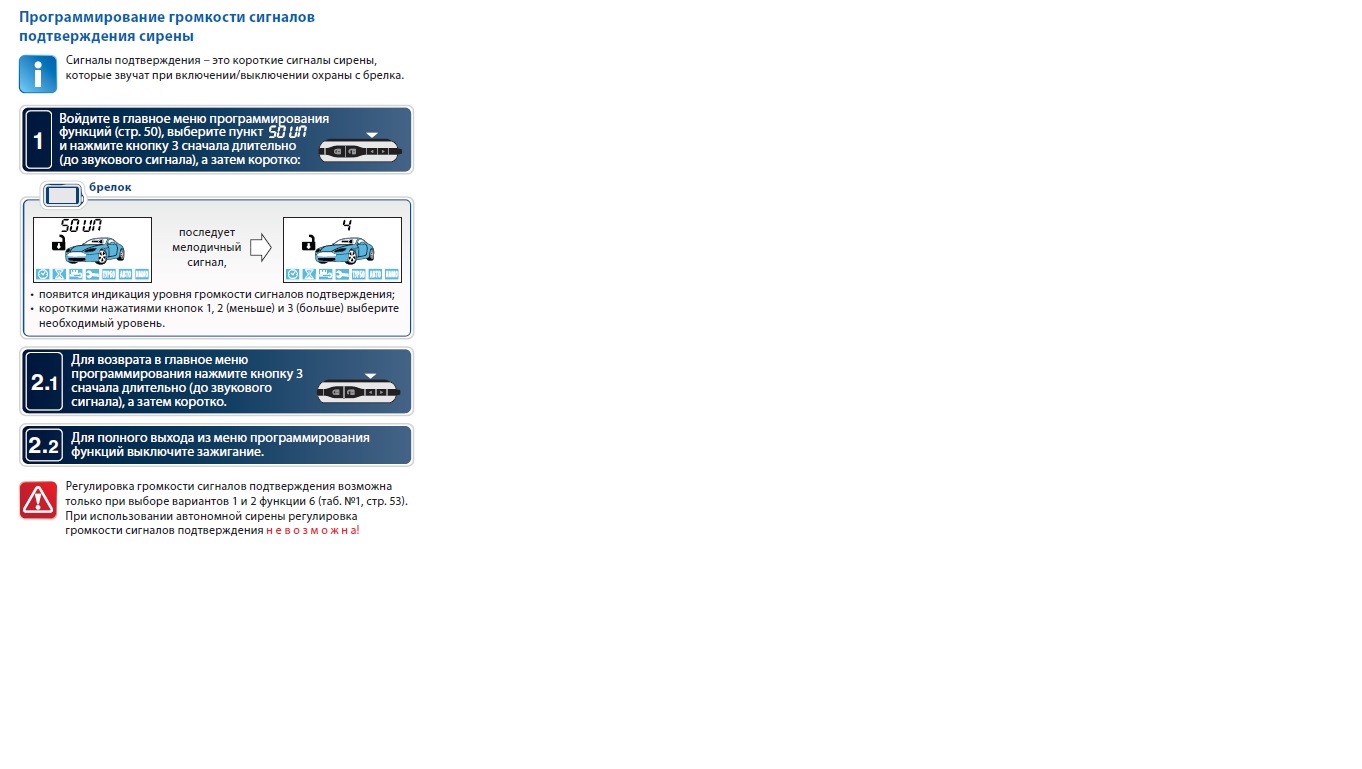 Сразу после установки установщики отдали машину с включенным беззвучным режимом постановки на охрану и снятия с охраны. Покапавшись в инструкции не нашли, как вернуть звук, тот самый "пик" или "пик-пик" при открытии-закрытии.