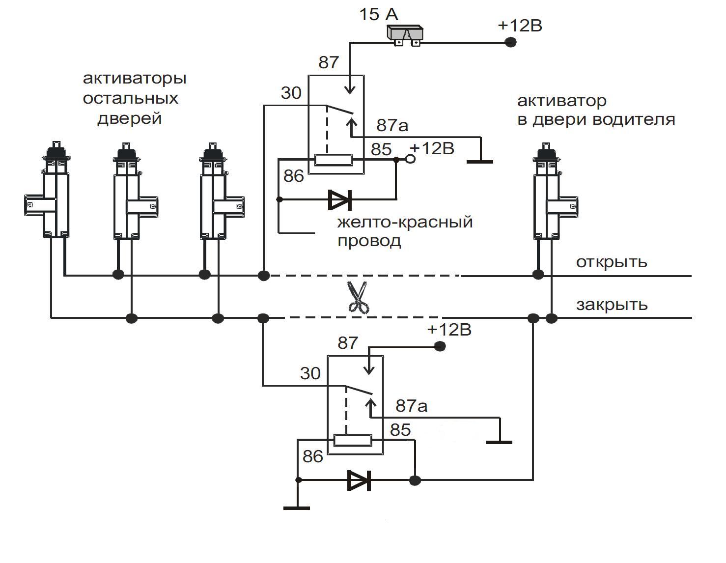 5 дверей + люк бензобака. По схеме двуступенчатого отпирания. Нужны ли внешние реле? Если да схемку бы глянуть если есть.